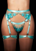 Romántico liguero con suaves elásticos satinados y un delicado bordado de peonias que te volverá irresistible. Confeccionado en tull italiano para una elegante transparencia y accesorios dorados que destacan el lujo de esta pieza, los clips están diseñados para sujetar ligas y medias al mismo tiempo evitando que se desplacen y manteniéndolas en su lugar por más tiempo. Encuentra el bra y la tanga del mismo conjunto.